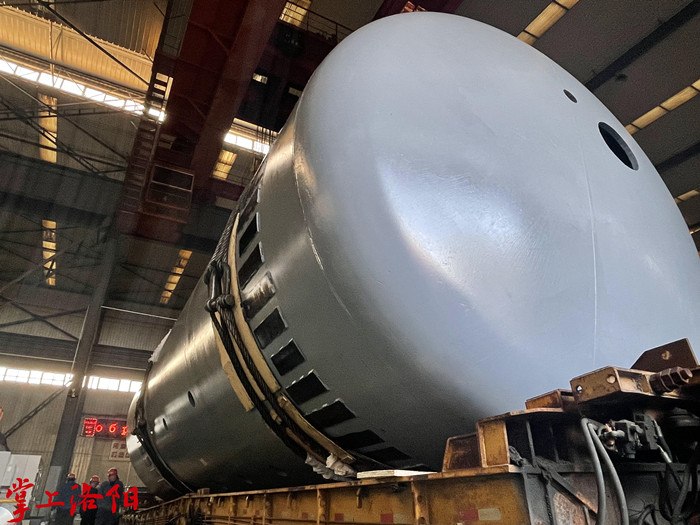 - 12月25日,我公司生產(chǎn)的兩臺φ5×15m陽極爐成功裝車,即將發(fā)往客戶現(xiàn)場。 該產(chǎn)品直徑5米、長15米,單臺爐體及配套設(shè)備重量達到385噸。雖然直徑高達5米,從爐體一端到15米